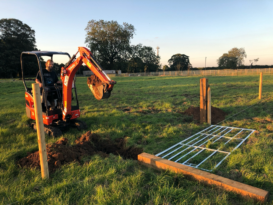 Another big outlay has been money spent on fencing. We’ve done it all ourselves with the aid of a hired mini digger, a post basher and lots of elbow grease from George and Tony. We’ve bought numerous 1.65 metre wooden posts and about 450 metres of stock fencing which will be stapled to the posts. Gateposts, hinges, gates and their various fasteners have been another big expense, but we’re determined to make as many separate paddocks as possible so that we have enough flexibility to be able to move sheep and ponies around easily and also to aid with worm control i.e. having some clean, or at least cleaner, pasture available when necessary and not overgrazing any particular area. To this end we’re in the process of making several small paddocks for the miniature ponies and sheep and a larger one for the biggest pony. We have some smaller gates which the sheep and ponies can get through safely, but we’ve made sure that all parts of the field will be accessible for large tractors because of the inevitable deadstock removal at some point. Not nice to think about I know but I’d rather be prepared.