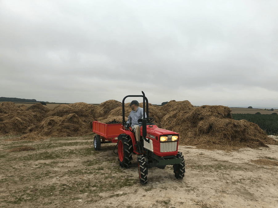 Little Red was cheap as tractors go and positively bargain basement compared to our neighbour’s impressive vehicles (one of their tractors alone cost an eye-watering £350,000), but he was a big purchase for us since we are trying, like most smallholders, to do everything on a shoestring. We’d always wanted a tractor and knew we’d get a lot of use out of it because we’ve struggled along for the past few years with our trusty lawn tractor and its tiny trailer. It’s fine for smaller jobs such as moving a sack of feed or collecting up sticks but if you overload it the trailer simply tips up and dumps everything back on the ground. It’s also horrendously uncomfortable to drive in the field which is very tussocky and uneven. With no suspension, your fillings are almost shaken out, or at least mine are, Hannah doesn’t have any, thank goodness!