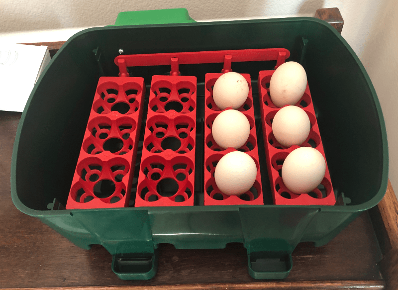 The eggs sit in the cradles and the mechanism tilts them gently from side to side. We use distilled water to ensure the right humidity is maintained and top it up at least twice a day.